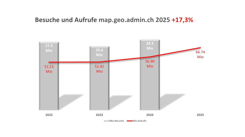 Damit bestätigt sich map.geo.admin.ch als zentrale digitale Infrastruktur, die Verwaltung, Wirtschaft, Wissenschaft und Bevölkerung gleichermassen unterstützt.