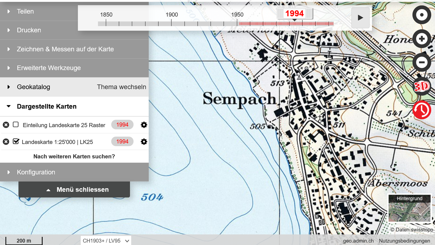 Um genaue Zeitanalysen zu erleichtern, plant swisstopo, die Zeitreisefunktion für jede Kartensammlung separat zu konfigurieren. Mit dieser Lösung bleibt die angezeigte Karte dieselbe, unabhängig von der Zoomstufe, die der Benutzer anwendet. Als Einstieg und zum Sammeln von Benutzerfeedback veröffentlicht swisstopo heute eine Zeitreise für die Landeskarte 1:25'000 über: