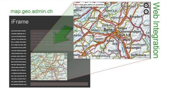 - The map.geo.admin.ch map viewer can be integrated into any web page as a small dynamic map (iFrame). The layout (CSS) and functions must not be modified.