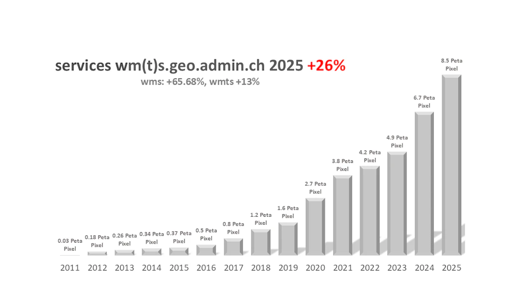 Au cours des dernières années, le géoportail fédéral est devenu une infrastructure numérique centrale pour les géodonnées. L’année 2025 montre clairement que l’utilisation des données par des applications externes prendra encore plus d’importance dans les années à venir.