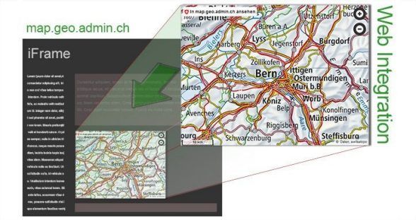 Per i siti web, geo.admin.ch offre un'opzione semplice e gratuita per integrare il visualizzatore di carte map.geo.admin.ch come iFrame.