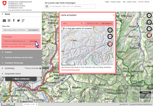 Per i siti web, geo.admin.ch offre un'opzione semplice e gratuita per integrare il visualizzatore di carte map.geo.admin.ch come iFrame.